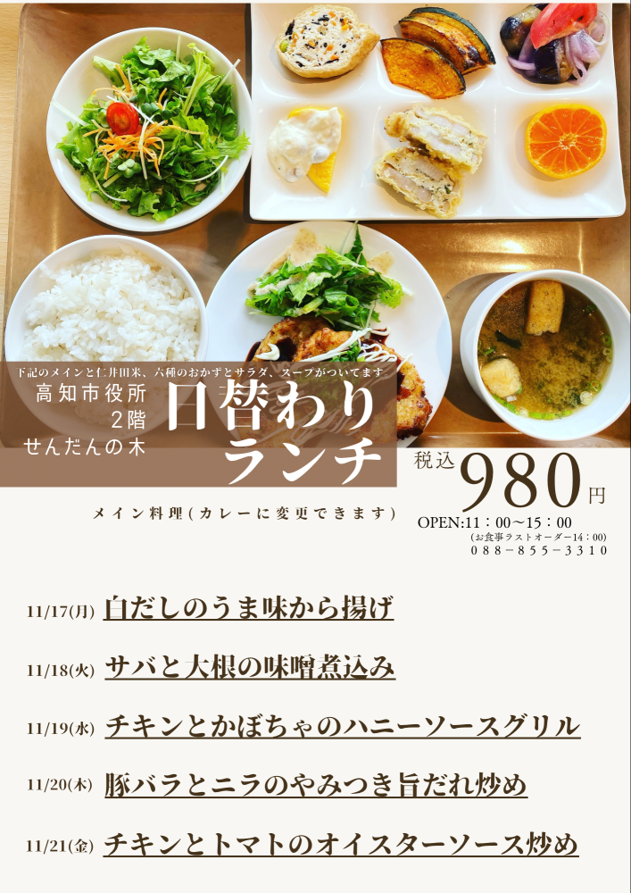 🥝🍆🍅11月17日からの日替わりランチのご案内🍓🍐🍉